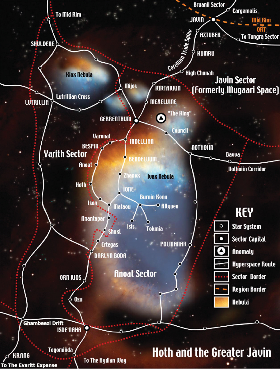 Past the Greater Javin and beyond the Ghambeezi Drift lie the last frail wisps of the galaxy that exist before