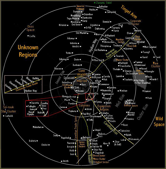 the great black void. There, at the far end of the Corellian Trade Spine, sit the colonies and the unexplored